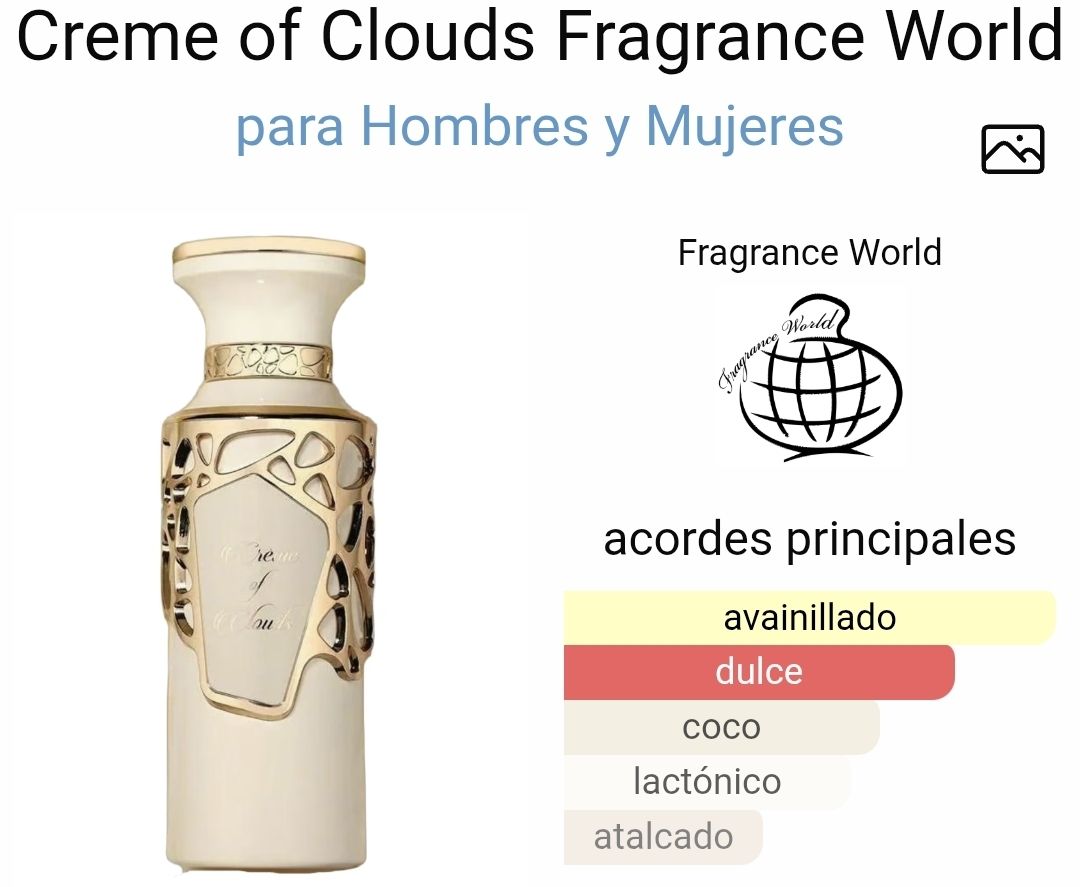 ✨ Creme of Clouds Fragrance World es un perfume ideal para hombres y mujeres.