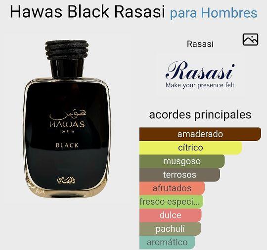 * Este producto se destaca por su nombre, Hawas Black Rasasi, que indica su naturaleza y uso. 📝