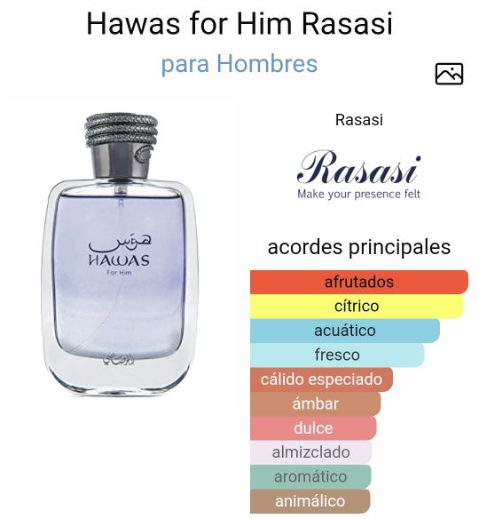 * El nombre del producto es «Hawas for Him Rasasi para Hombres». 📝
