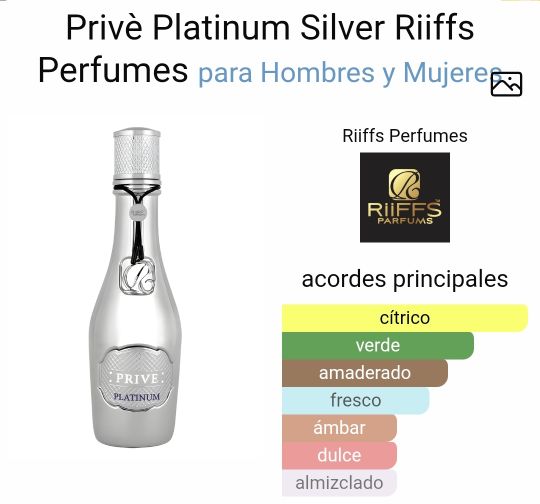 El Prive Platinum Riiffs Perfumes 100ML es un perfume unisex que combina notas